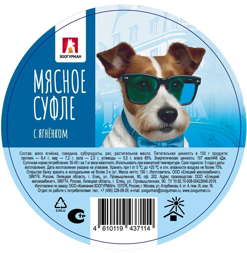 Нежное мясное суфле ЗООГУРМАН создано специально для собак мелких пород. Состав серии оптимально сбалансирован по всем питательным и биологически активным веществам, что обеспечивает необходимый запас микроэлементов и дарит энергию для полноценной активной жизни. Консервированный корм для собак премиум класса. Состав серии оптимально сбалансирован по всем питательным и биологически активным веществам, что обеспечивает необходимый запас микроэлементов и дарит энергию для полноценной активной жизни. Изысканный вкус суфле придется по душе даже самому привередливому питомцу! Рекомендации по кормлению указаны в таблице. Подавайте корм комнатной температуры. Следите за наличием у животного свежей питьевой воды. Состав Ингредиенты: мясо ягненка, говядина, субпродукты, рис, растительное масло Питательная ценность в 100 г продукта: протеин - 6,4 г, жир – 7,2 г, зола – 2,0 г, углеводы – 5,0 г, влага – 85% Энергетическая ценность: 107 ккал/448кДж