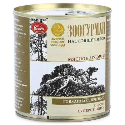 Влажный консервированный корм для собак Зоогурман Мясное ассорти Говядина/Печень 350гр