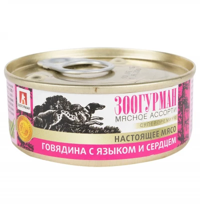Влажный консервированный корм для собак Зоогурман Мясное ассорти Говядина/Язык/Сердце 100гр