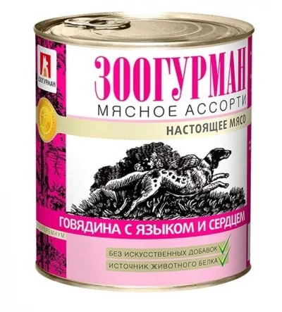 Влажный консервированный корм для собак Зоогурман Мясное ассорти Говядина/Язык/Сердце 750гр